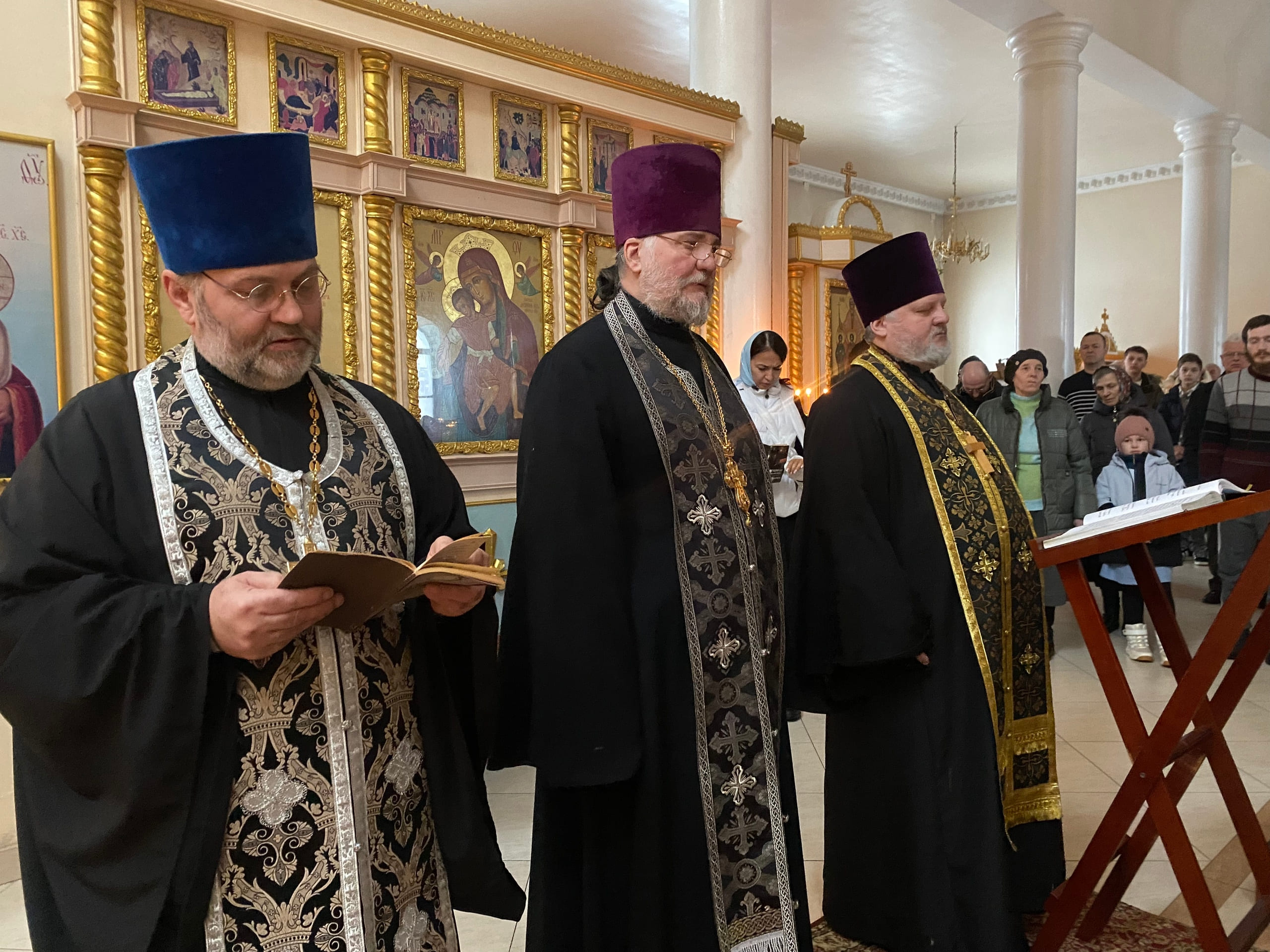 Его Преосвященству сослужили: секретарь епархиального управления иерей Антоний Чуть, настоятель храма иерей Александр Сутырин, иерей Николай Михайленко, иерей Сергий Синюк и иерей Георгий Завильский.