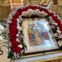 Праздничные песнопения за богослужением исполнил хор под управлением регента Марии Каминской.