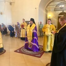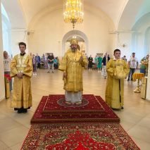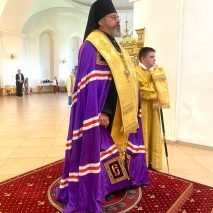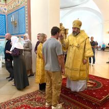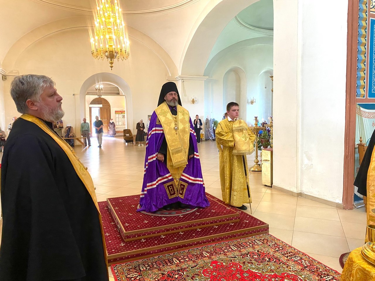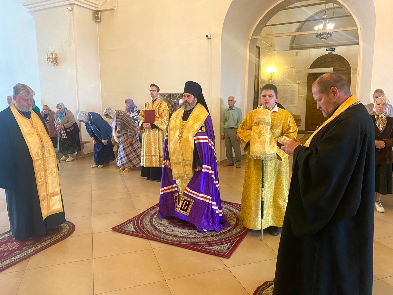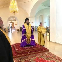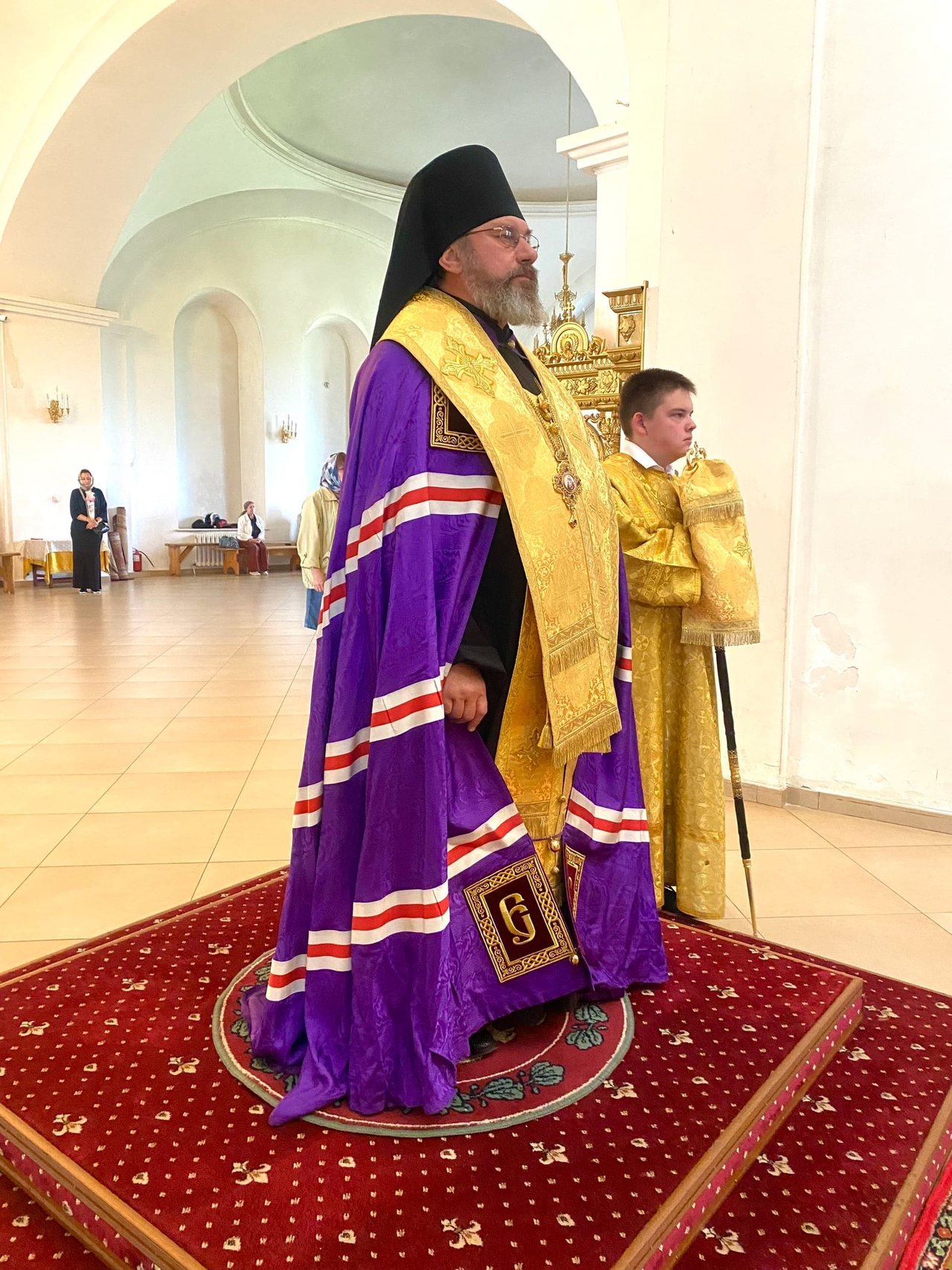 Его Преосвященству сослужили: секретарь епархиального управления иерей Антоний Чуть, иерей Виталий Ярмулик, иерей Олег Федоров и иерей Алексий Беляков.
