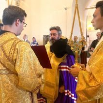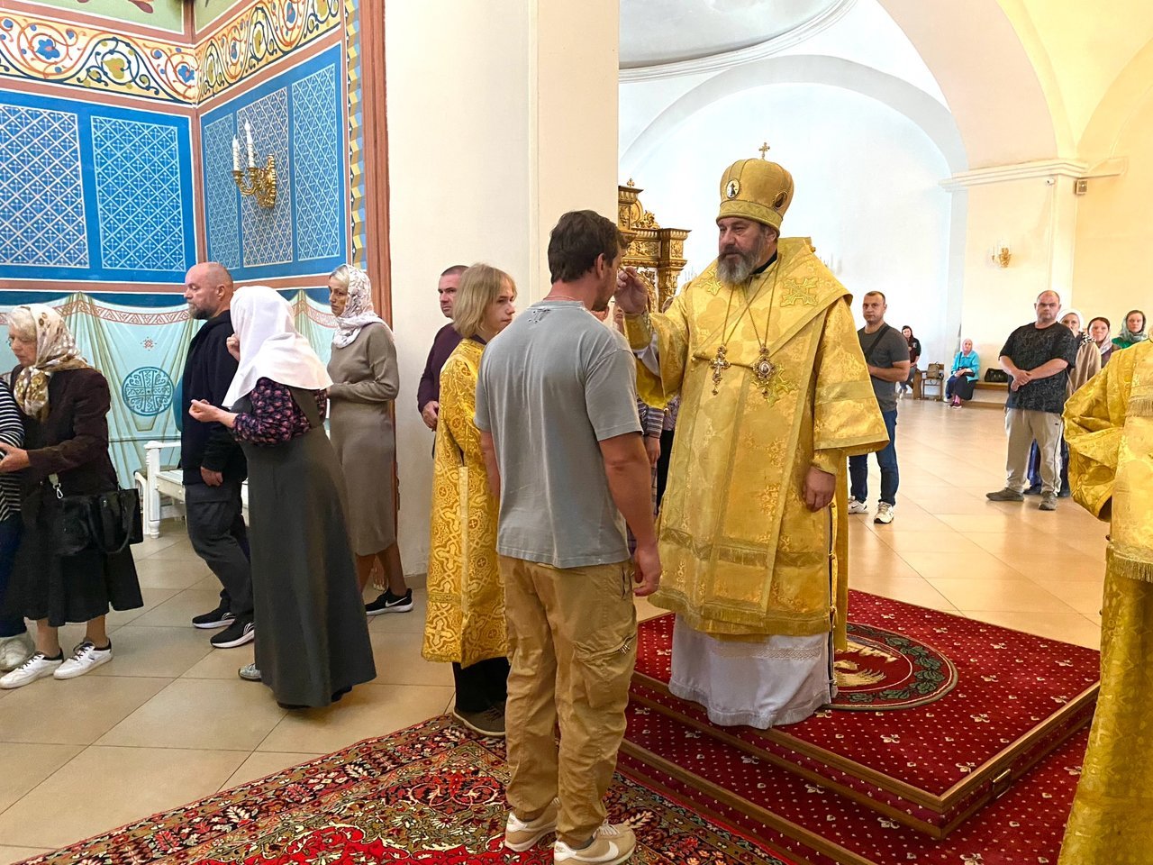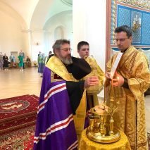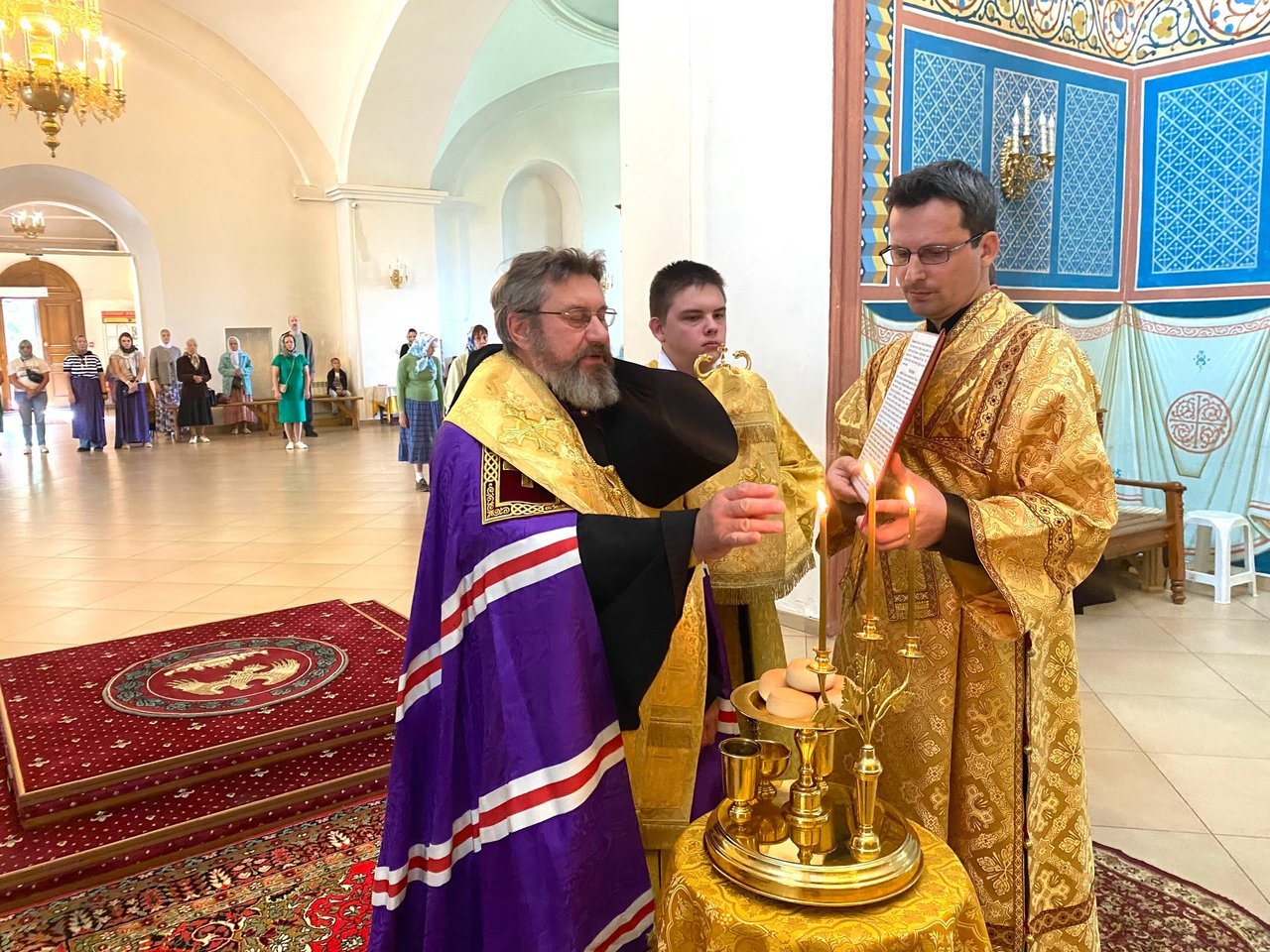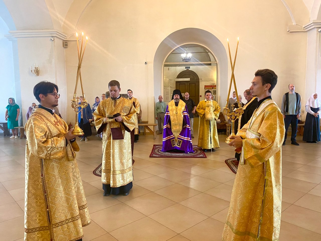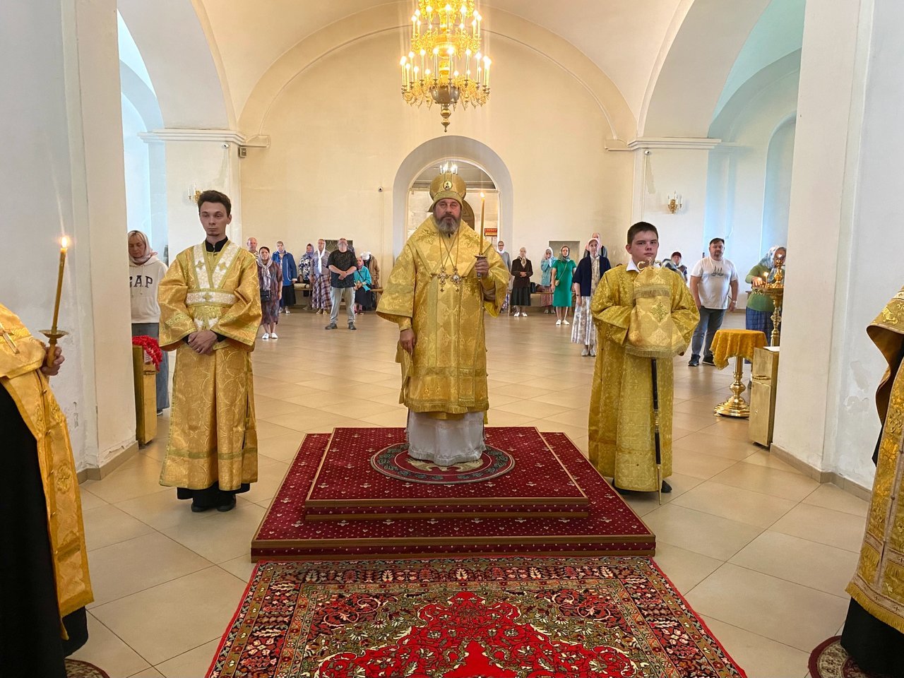 Его Преосвященству сослужили: секретарь епархиального управления иерей Антоний Чуть, иерей Виталий Ярмулик, иерей Олег Федоров и иерей Алексий Беляков.
