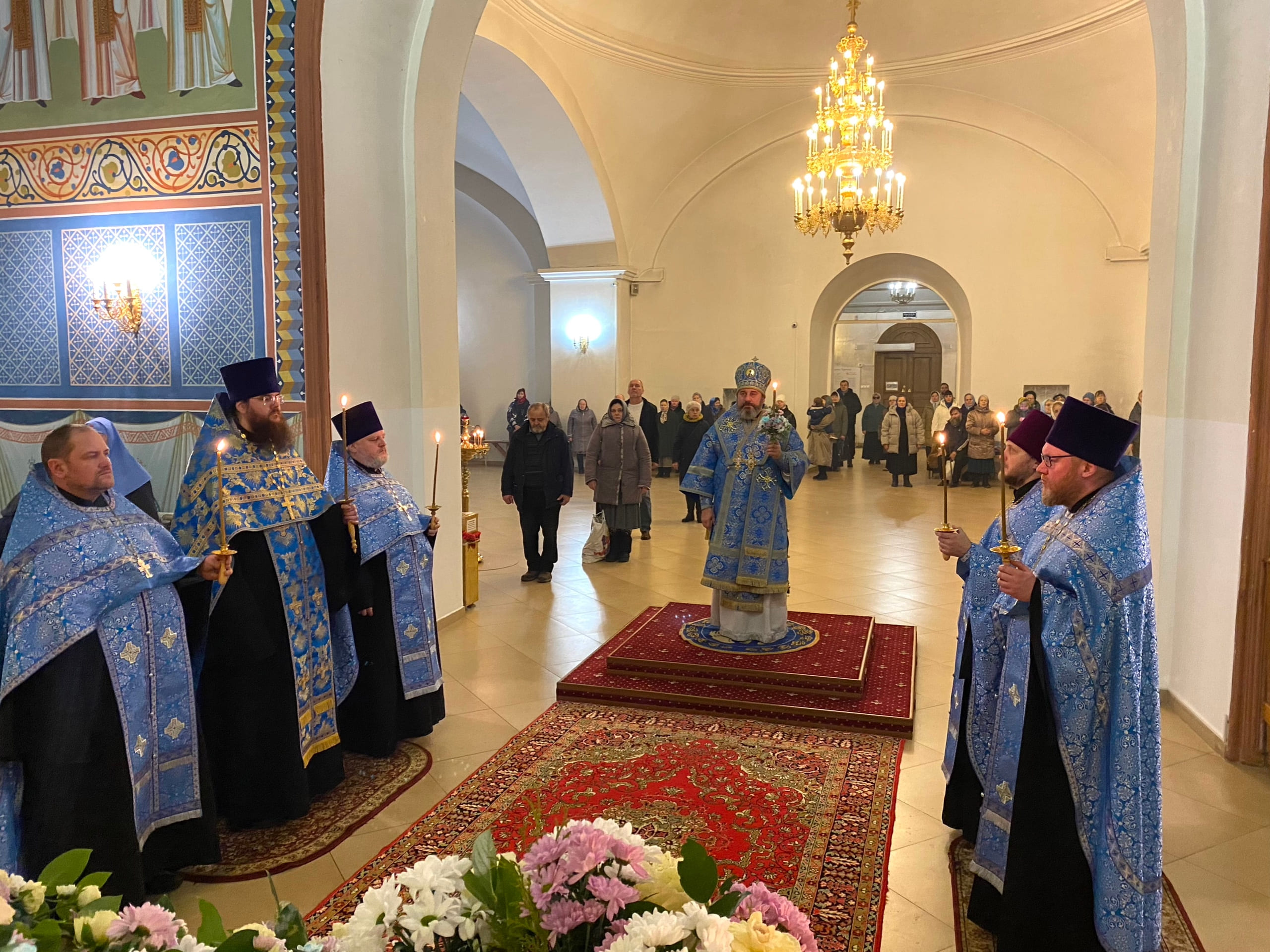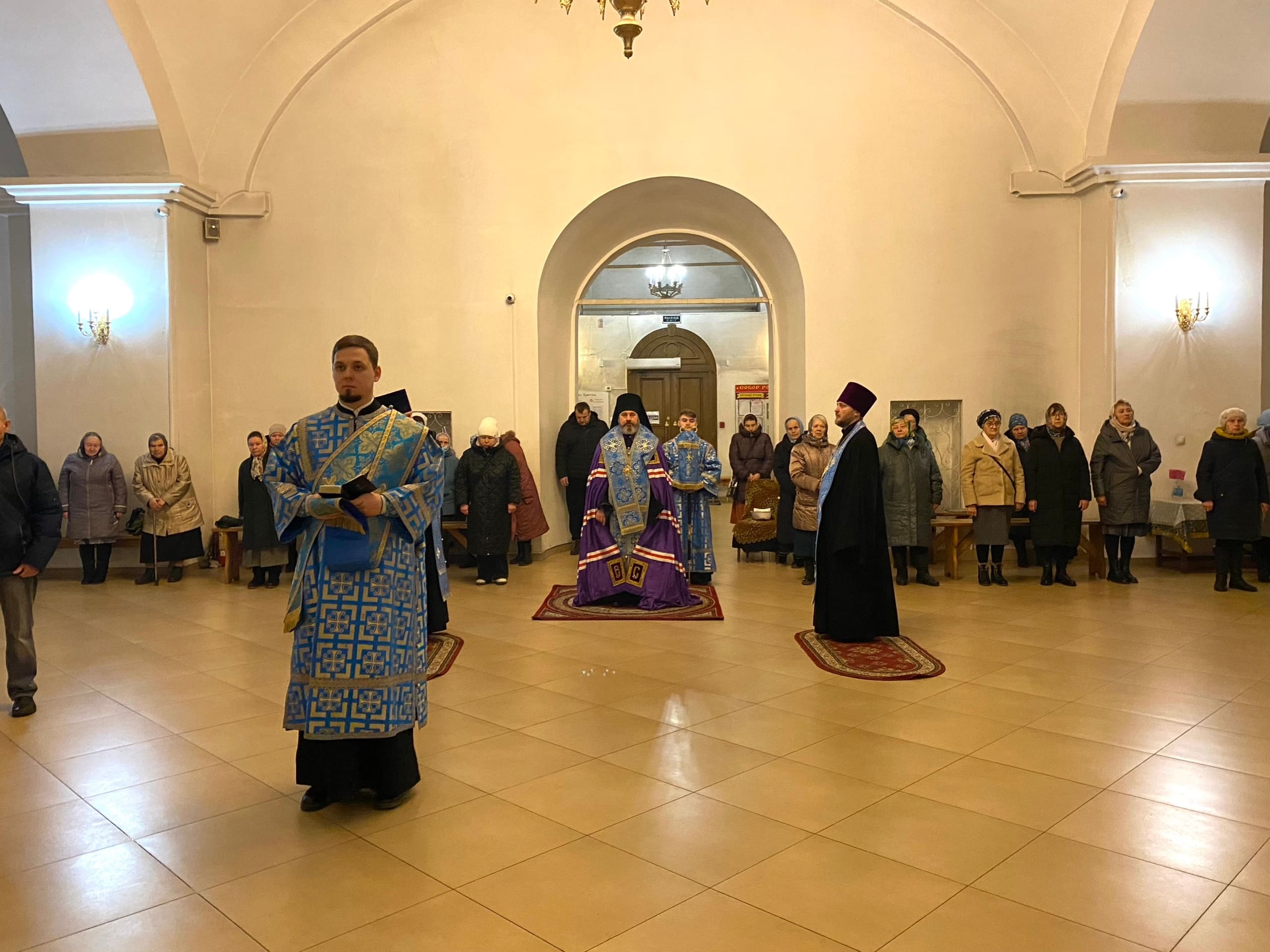 3 декабря 2025 года канун праздника Введения во храм Пресвятой Богородицы, Преосвященный Стефан, епископ Александровский и Юрьев-Польский, совершил всенощное бдение в Христо-Рождественском кафедральном соборе г. Александрова.