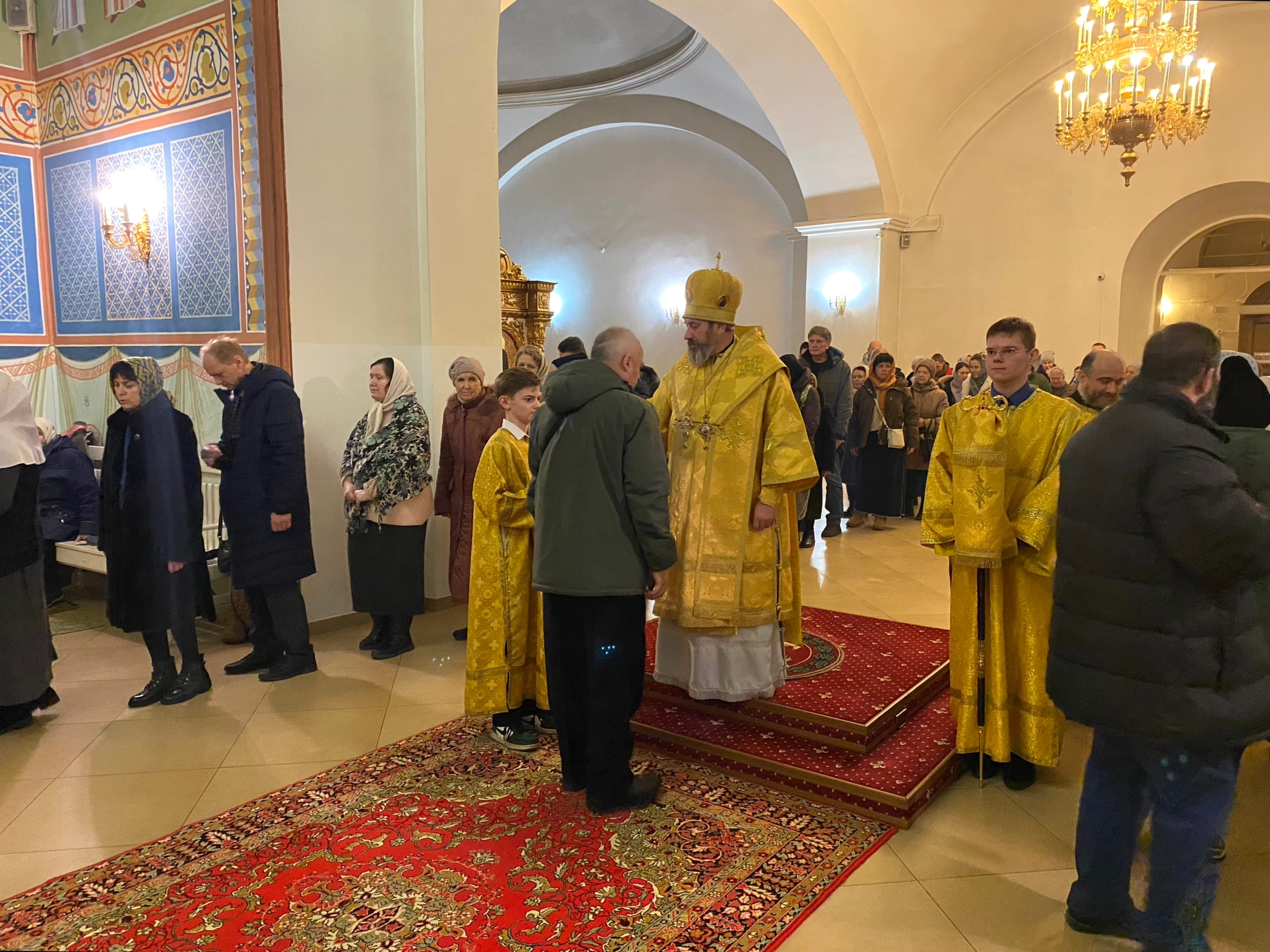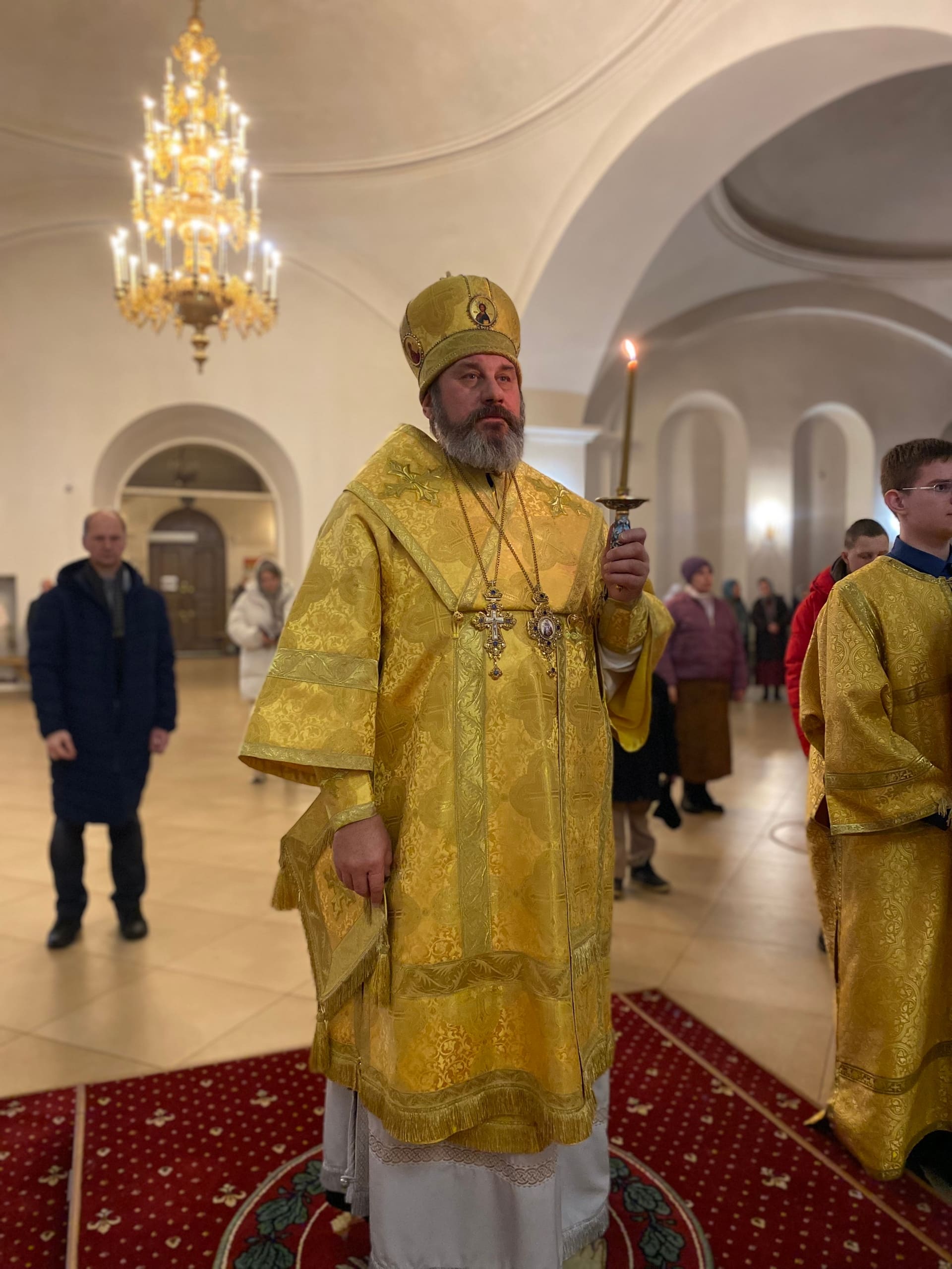 13 декабря 2025 года, в канун 27-й недели по Пятидесятнице, день памяти пророка Наума, Преосвященный Стефан, епископ Александровский и Юрьев-Польский, совершил всенощное бдение в Христо-Рождественском кафедральном соборе г. Александрова.