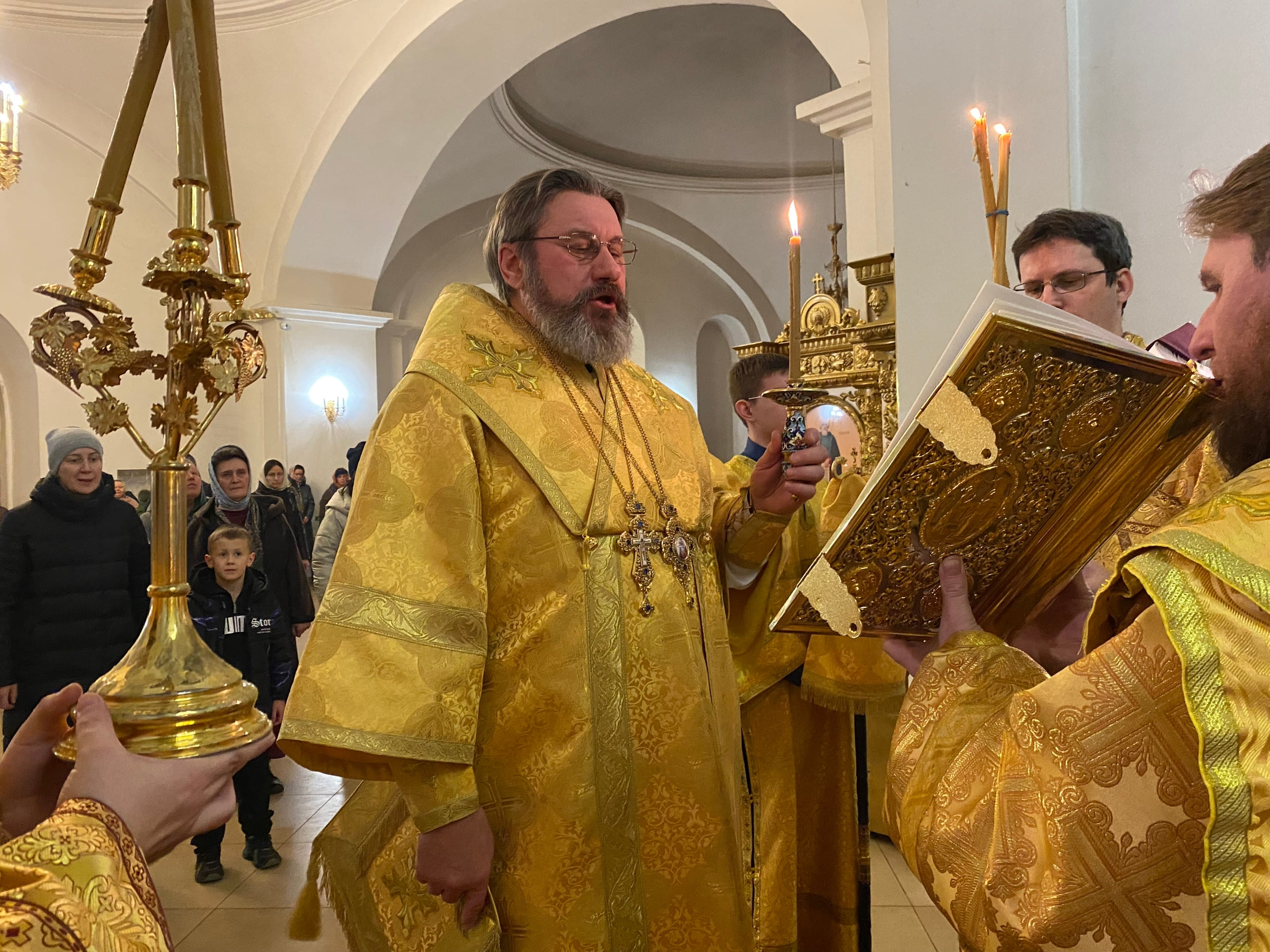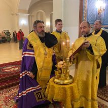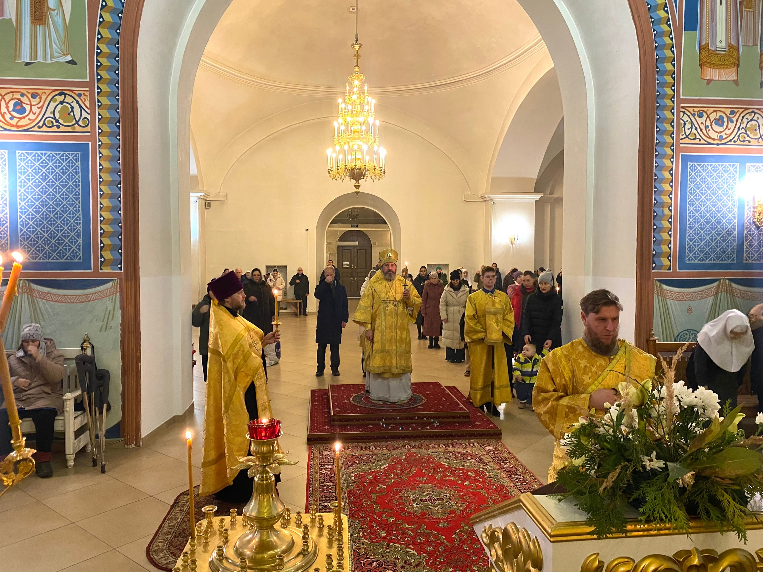 Его Преосвященству сослужили: иерей Алексий Ануфриев и иерей Алексий Беляков.