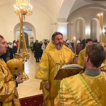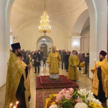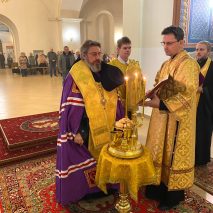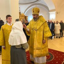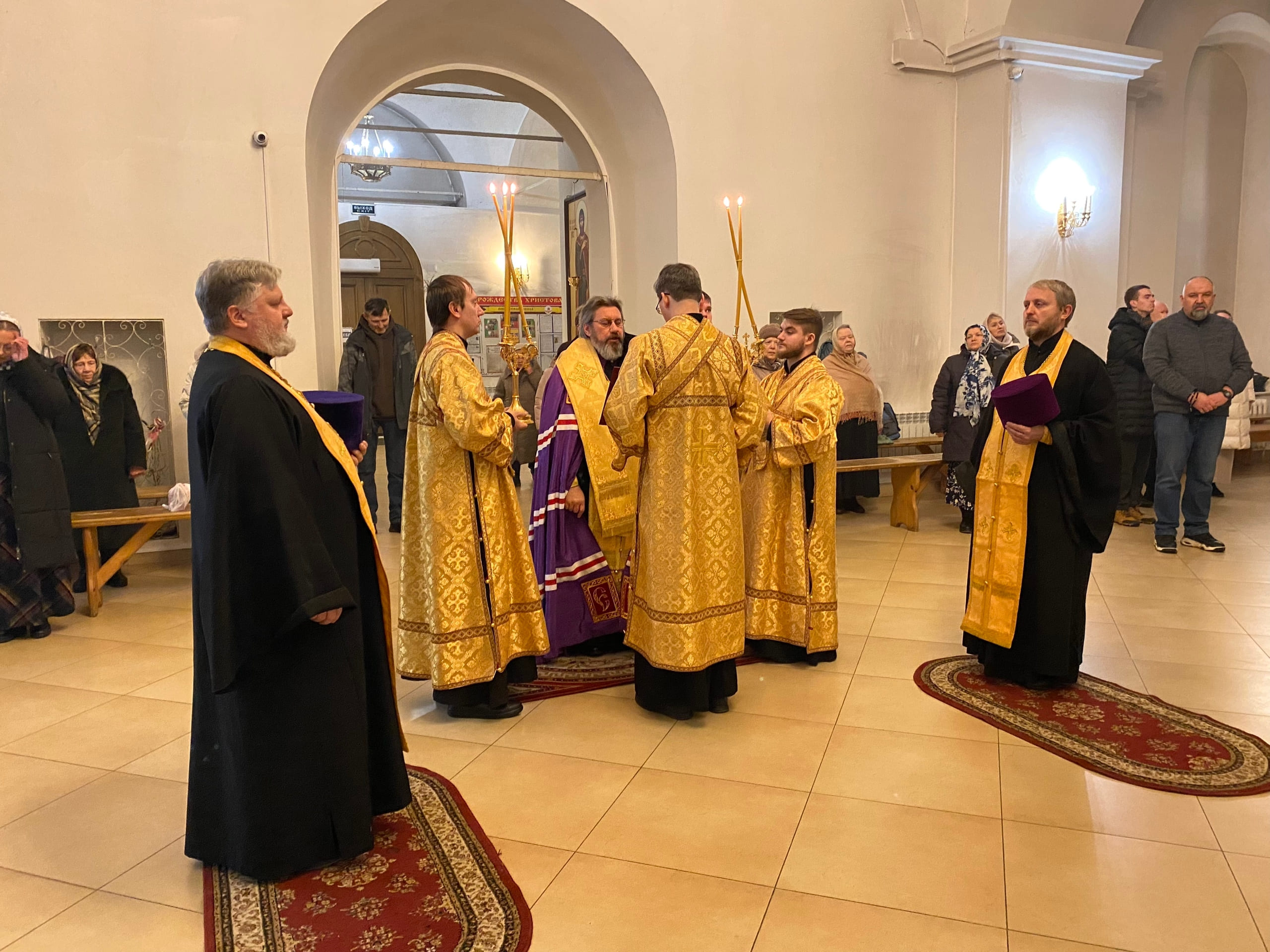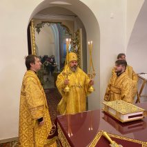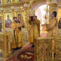 Его Преосвященству сослужили: секретарь епархиального управления иерей Антоний Чуть, иерей Алексий Ануфриев, иерей Виталий Ярмулик и иерей Алексий Беляков.