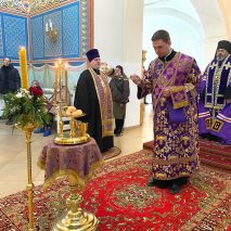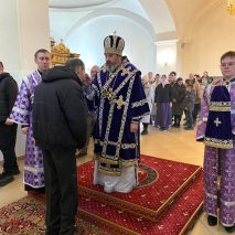 За утреней, после прочтения Евангелия, архипастырь совершил помазание прихожан освященным елеем.