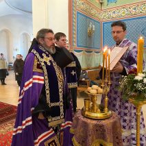 Его Преосвященству сослужили: секретарь епархиального управления иерей Антоний Чуть и духовенство собора.