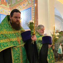 На утрене после чтения Евангелия и 50-го псалма было совершено традиционное освящение ваий (верб).