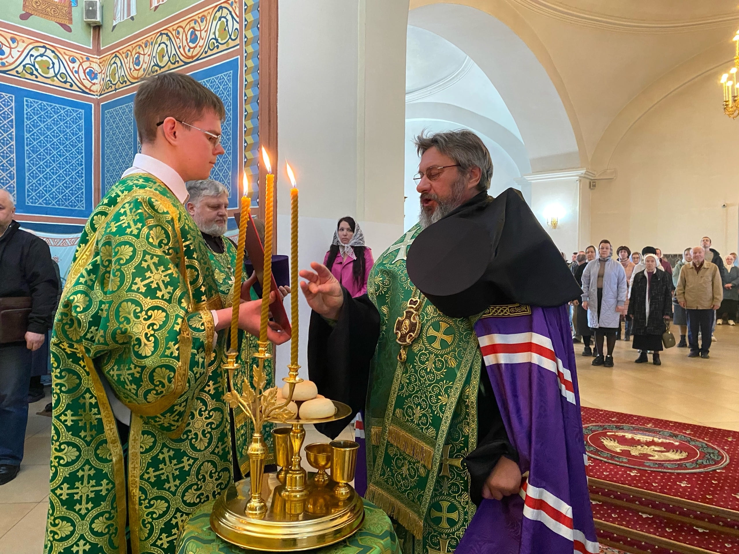 Его Преосвященству сослужили: секретарь епархиального управления иерей Антоний Чуть и духовенство собора.