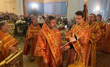 Его Преосвященство сослужили секретарь епархиального управления иерей Антоний Чуть и духовенство собора.