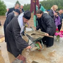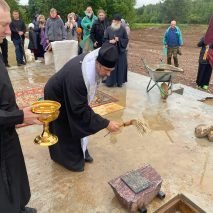 В ходе чина Архипастырь прочитал особые молитвы, затем окропил святой водой и святым елеем закладную плиту, которая была заложена в фундамент в алтарной части.