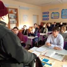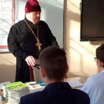19 февраля руководитель Миссионерского отдела, клирик храма преподобного Серафима Саровского протоиерей Георгий Шинкаренко провел встречу с учащимися 9 класса школы №5 имени старшего лейтенанта В.В. Зиненко.