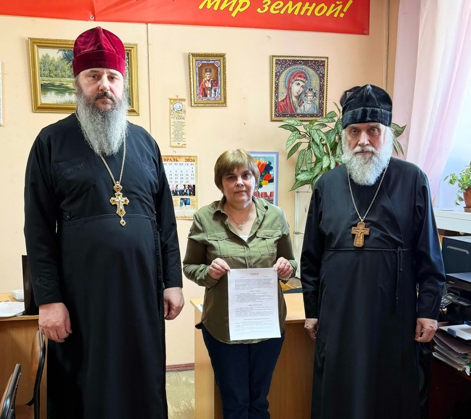 Подписи под документом поставили благочинный Кольчугинского округа протоиерей Анатолий Балыкин и председатель местной организации Общероссийской общественной организации инвалидов «Всероссийское общество слепых» Кузнецова Людмила Геннадьевна.