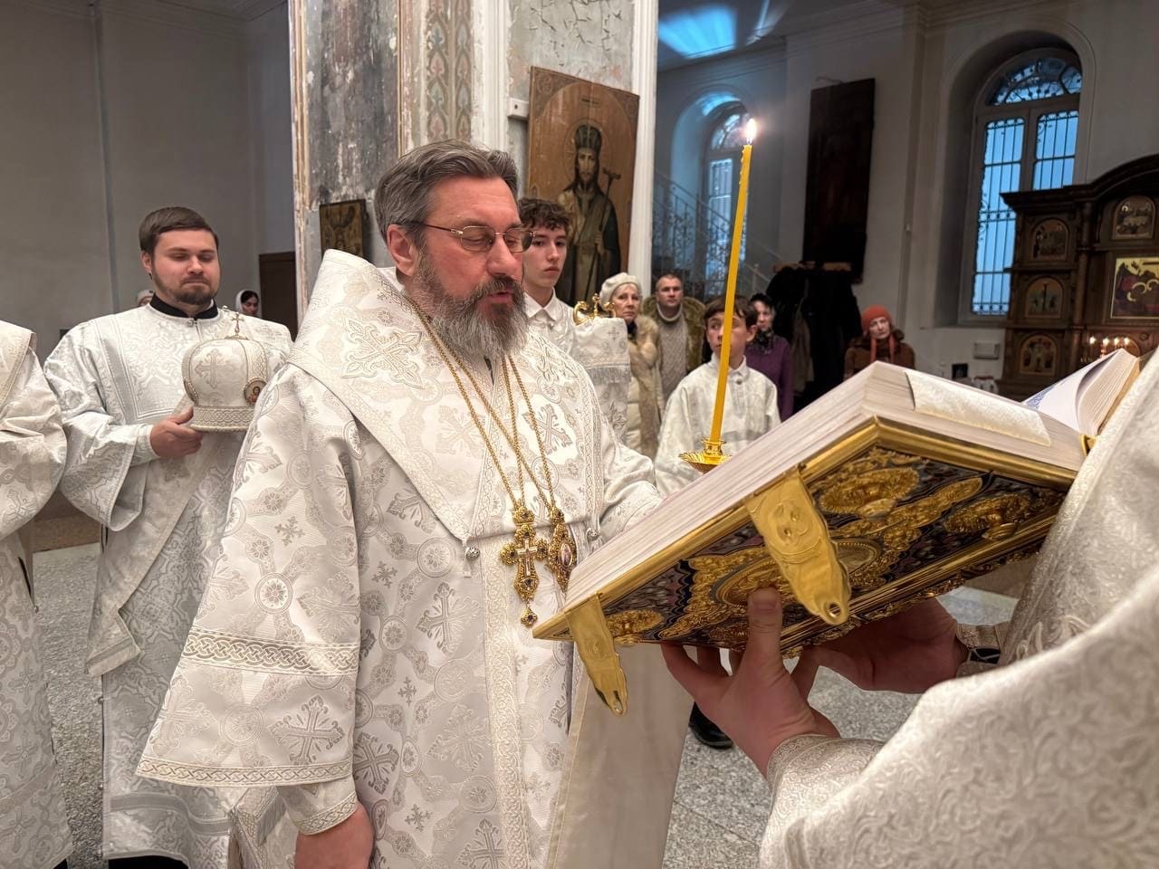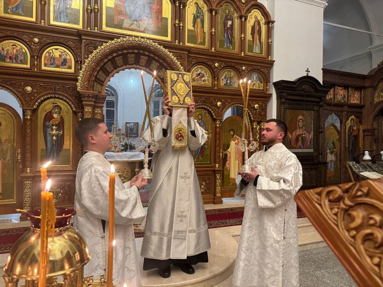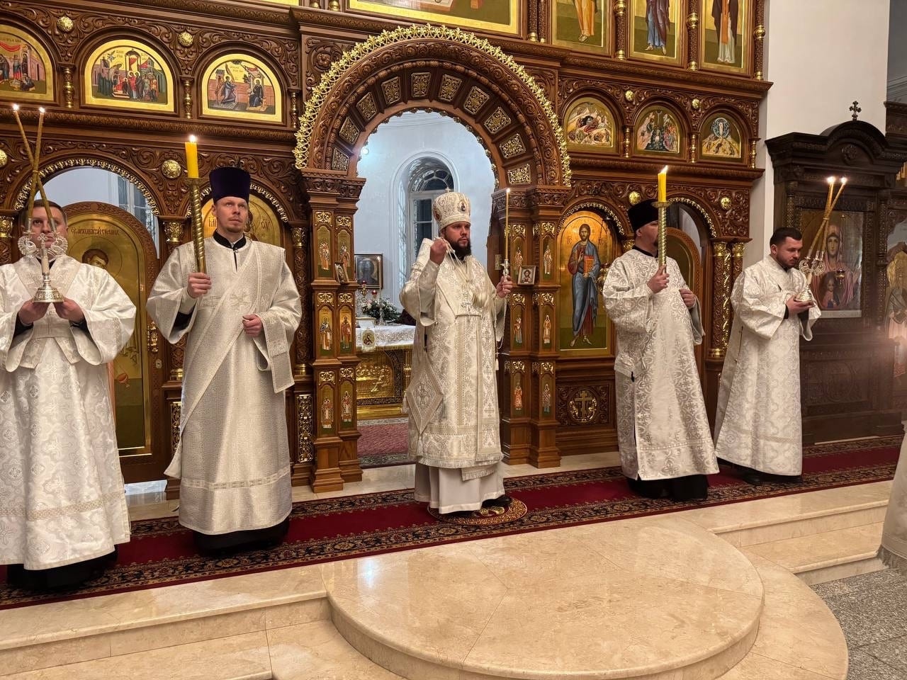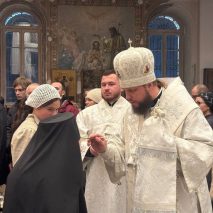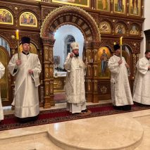 Архипастырям сослужили: секретарь епархиального управления иерей Антоний Чуть, протоиерей Сергий Маратканов, иерей Николай Соболь и иеромонах Макарий (Варежкин).