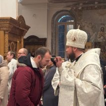 После прочтения Евангелия митрополит Никандр совершил помазание прихожан освященным елеем.