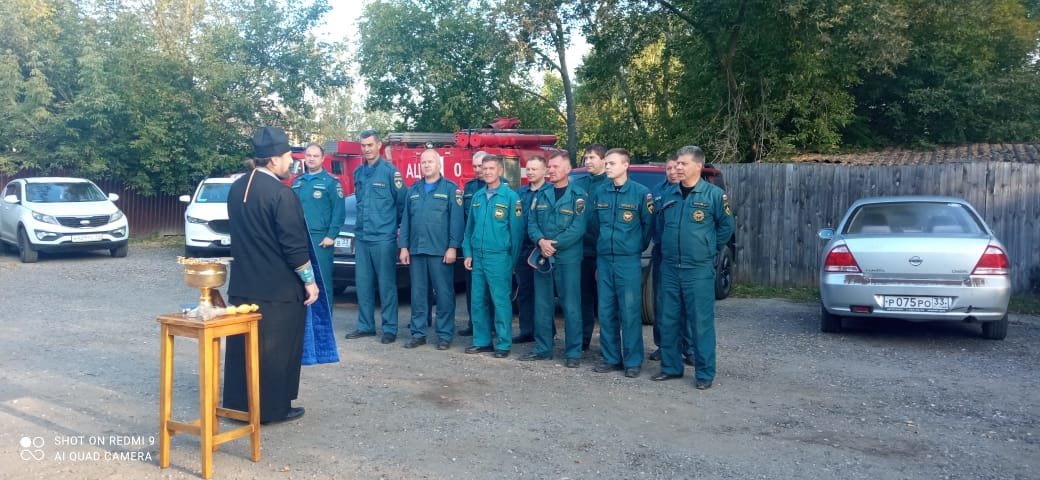 17 сентября 2025 года, в день празднования иконы Божией Матери «Неопалимая Купина», почитаемой как покровительница пожарных и спасателей, в пожарно-спасательной части № 80 города Юрьев-Польского состоялось торжественное молебное пение.