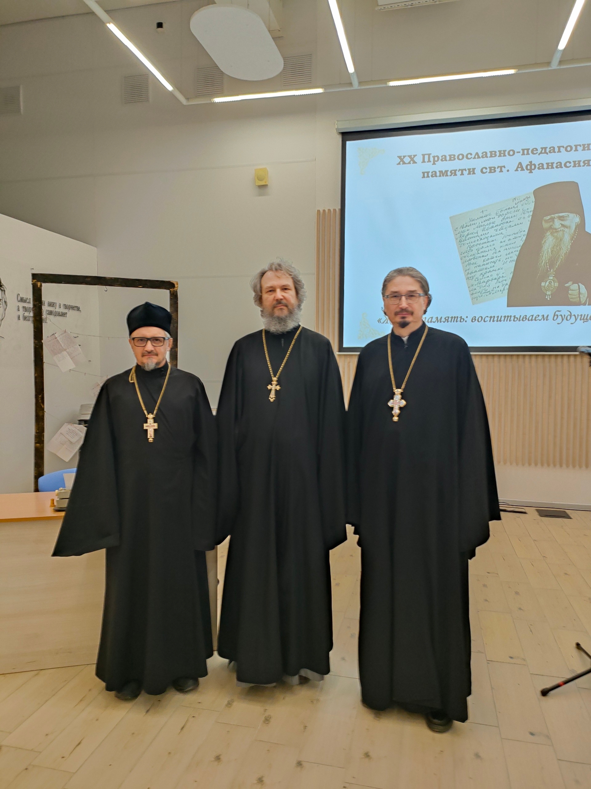 Научная часть конференции включала в себя два доклада. Первым докладчиком был доцент кафедры богословия Московской духовной академии протоиерей Павел Великанов. Он говорил о формировании ценностно-ориентированной среды как условии образовательного процесса.
