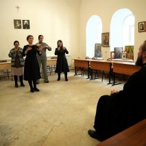 В рамках курсов состоялась встреча с Владыкой Никандром. Слушатели представили Его Высокопреосвященству патриотические произведения, исполненные на русском жестовом языке.