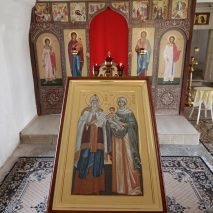 По окончании Литургии духовенство и прихожане совершили торжественный крестный ход и славление перед иконой святых Захарии и Елисаветы.