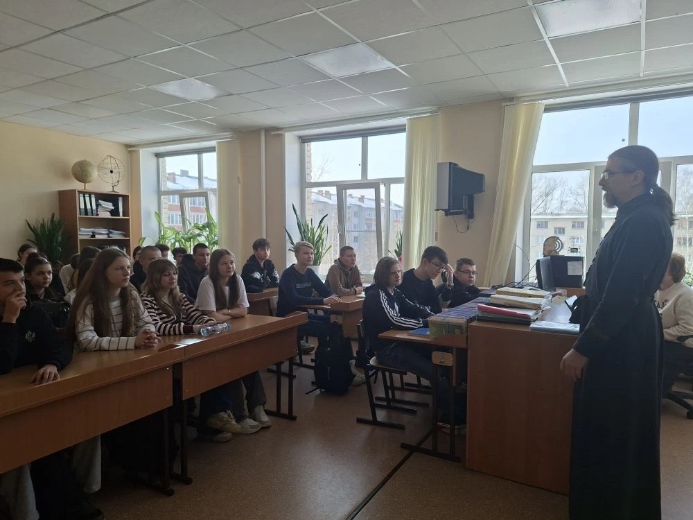 12 марта 2026 года в Петушинском промышленно-гуманитарном колледже состоялась встреча священника Свято-Успенского храма г. Петушки иерея Дионисия Рязанова с учащимися. Мероприятие было организовано помощником катехизатора Ольгой Александровной Антошиной.