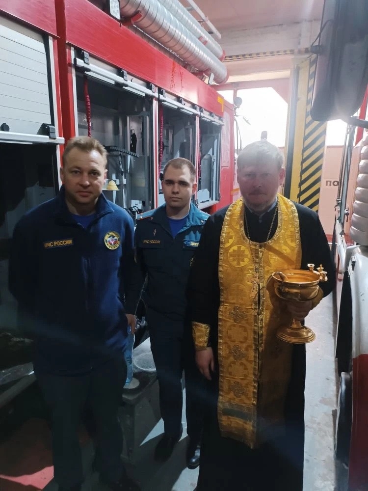 Отец Сергий поблагодарил сотрудников пожарной службы за опасный и самоотверженный труд, пожелал им и их семьям Божьего благословения, здоровья, счастья и благополучия.