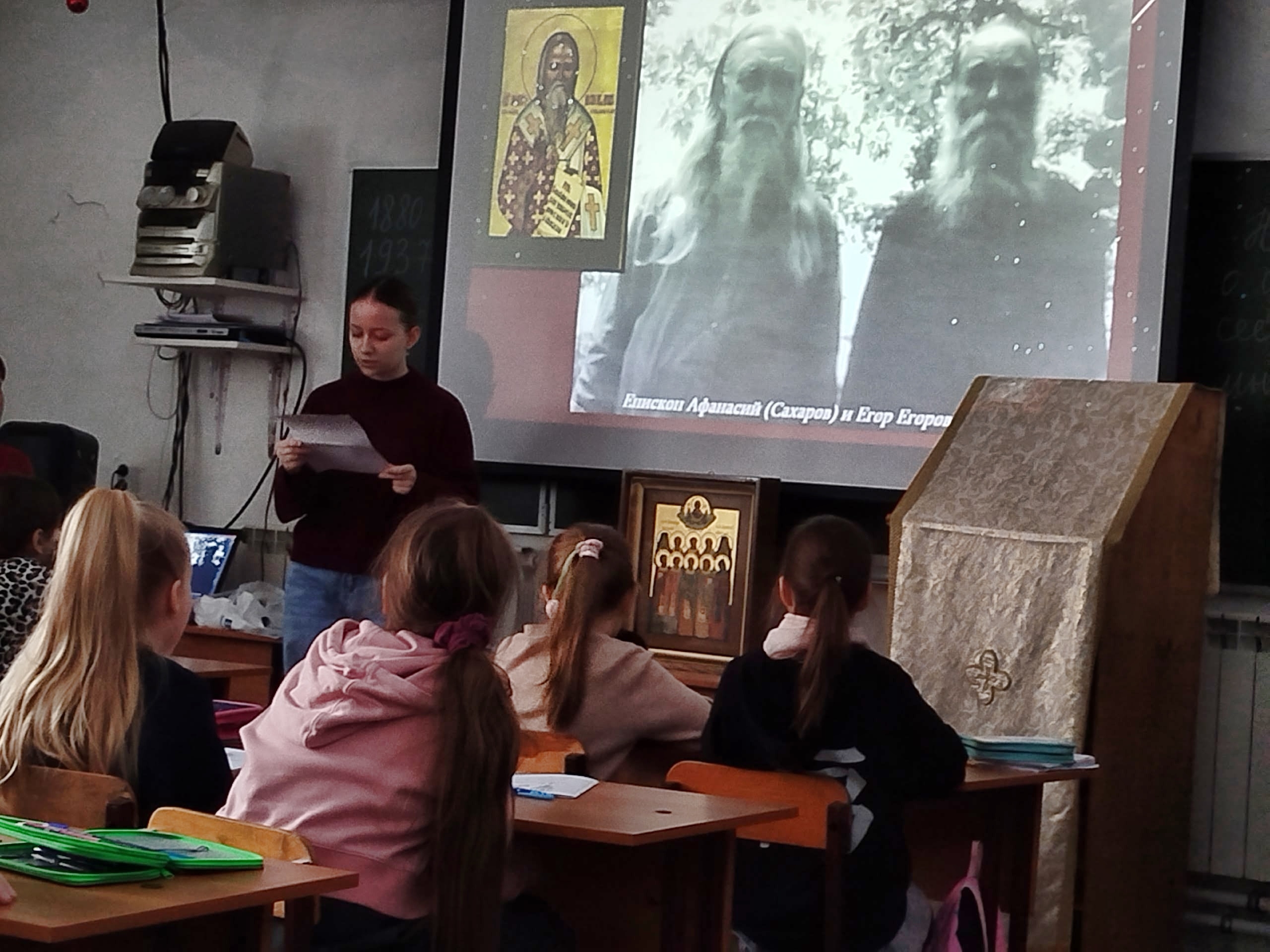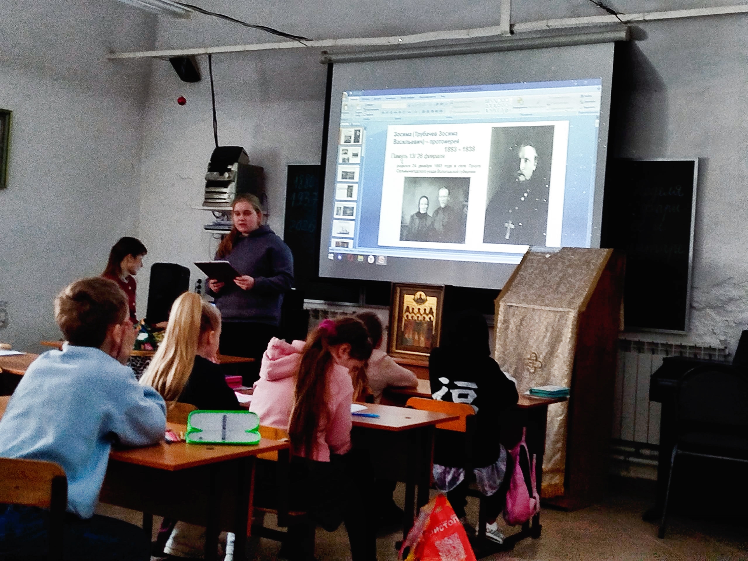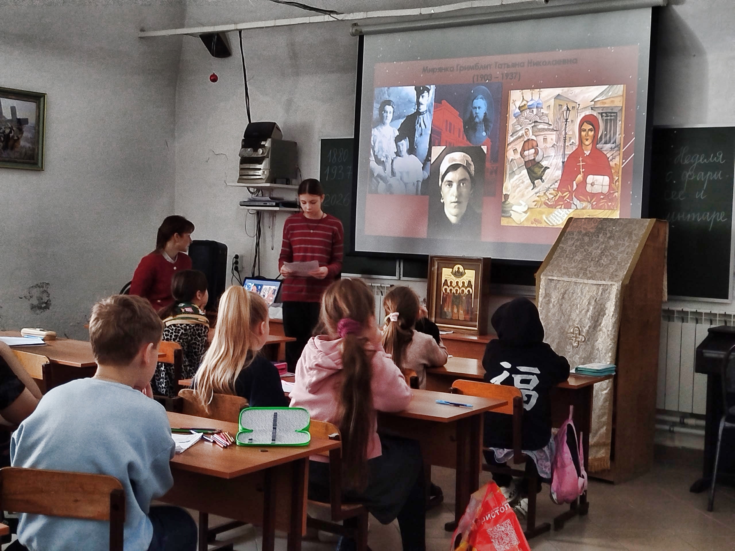 На занятии прозвучали рассказы о подвиге духовенства и мирян, был показан фрагмент фильма о мученице Татиане Гримблит и прочитаны её стихи.