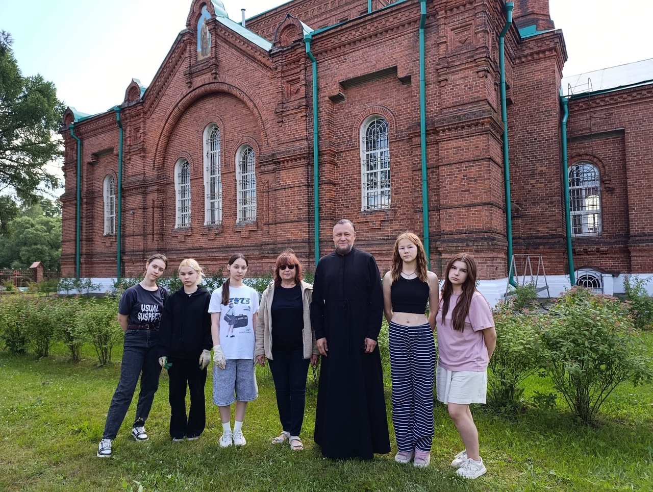 С наступлением лета учащиеся Петушинской средней школы №2 им. А. Г. Манько, вот уже на протяжении нескольких лет, активно участвуют в убранстве территории Успенского храма г. Петушки и парковой его части, где установлен памятник святителю Афанасию (Сахарову).