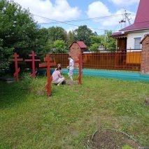 Галина Владимировна Меркулова и учащиеся школы активно провели несколько июньских дней в физическом труде, а по окончании и в беседах за чашечкой чая с благочинным Петушинского церковного округа протоиереем Сергием Берёзкиным.