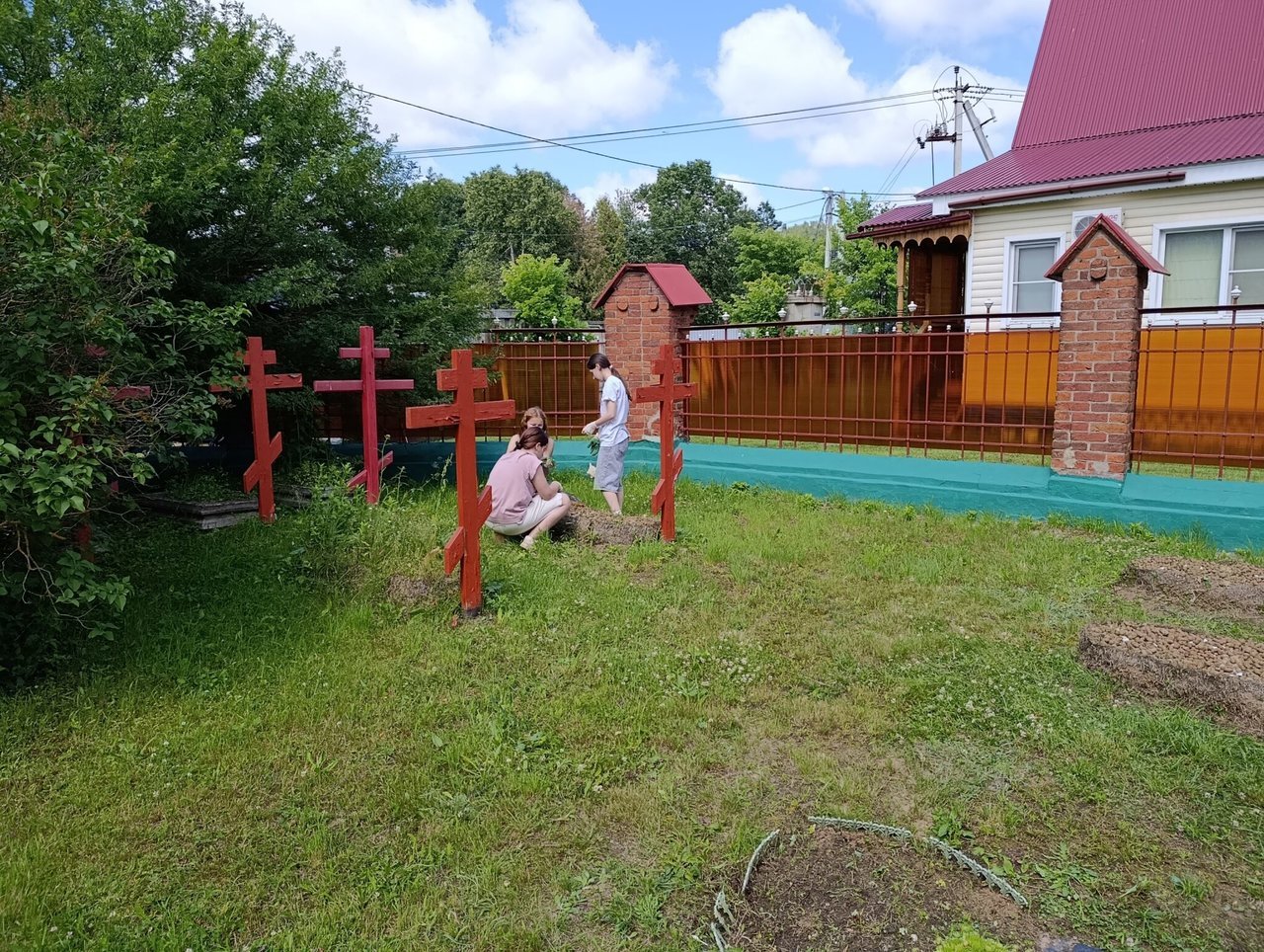 Галина Владимировна Меркулова и учащиеся школы активно провели несколько июньских дней в физическом труде, а по окончании и в беседах за чашечкой чая с благочинным Петушинского церковного округа протоиереем Сергием Берёзкиным.