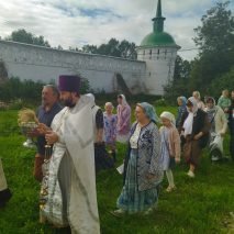 После литургии вокруг храма был совершен крестный ход, в завершении которого по традиции были освящены плоды нового урожая.