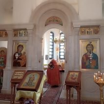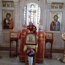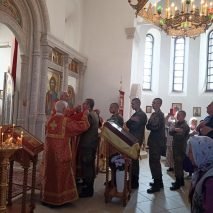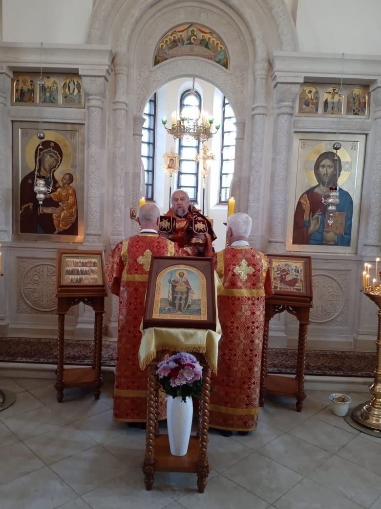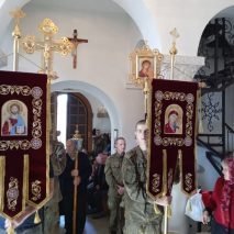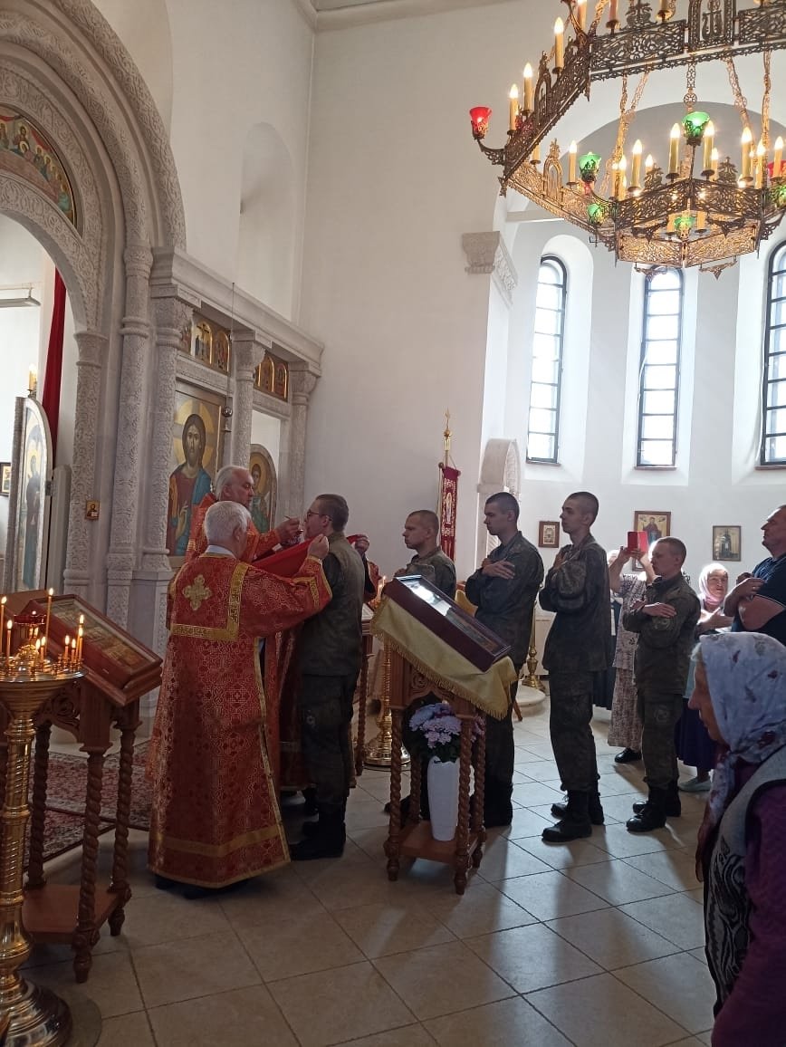 Божественную литургию совершил настоятель храма протоиерей Николай Мишин. Праздничное богослужение собрало под сводами храма прихожан, а также военнослужащих срочной службы.