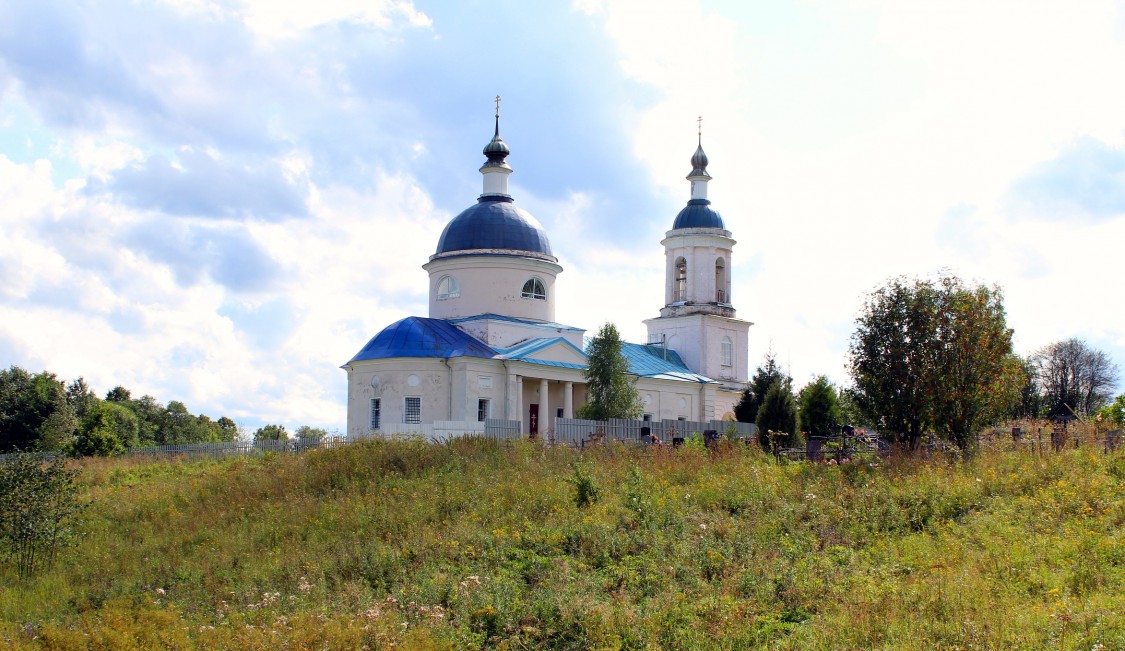 Как можно заметить, что эта кирпичная церковь в стиле зрелого классицизма, прекрасно сохранилась до наших дней. Здесь мы можем видеть, что храм состоит из однокупольного четверика с боковыми портиками, полукруглой апсиды, небольшой трапезной и трёхъярусной колокольни. Центральный вход украшает классический треугольный фронтон на четырёх массивных каменных колоннах. Луковичная глава возвышается на сферическом куполе, установленном на большом центрическом световом барабане. Колокольня представляет собой композицию «ротонда на четверике», где первый ярус звонницы в совокупе с углом трапезной, украшен рустовкой. Третий же ярус звонницы украшен полуколоннами. Стены оштукатурены и выкрашены в нежный бело-желтоватый цвет. Кровля и купола покрыты оцинкованным железом. Внутренняя отделка также проста и лаконична, как и наружная. Старинных росписей не сохранилось.