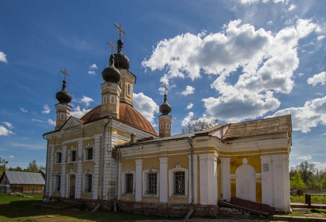 В архитектурном облике преобладают переходные черты уходящего барокко и раннего классицизма. Церковь представляет собой трехчастный пятиглавый храм трапезного типа, композиция которого вытянута по оси восток-запад. Центральный объем выполнен в форме двухэтажного четверика с высоким сферическим куполом в обрамлении фронтонов, на которых установлены пять восьмигранных барабанов с массивными луковичными главками. С восточной стороны устроена полукруглая апсида с классической конхой. С западного торца к храму примыкает небольшая трапезная, над которой раньше возвышалась трехъярусная колокольня. Церковь украшена рустованными пилястрами, полуколоннами, карнизами, фронтонами и фигурными наличниками окон. Храм окружала великолепно выполненная церковная ограда с двумя каменными воротами, одни из которых вели к усадебному дому, а другие смотрели на дорогу, ведущие в губернский город Владимир.