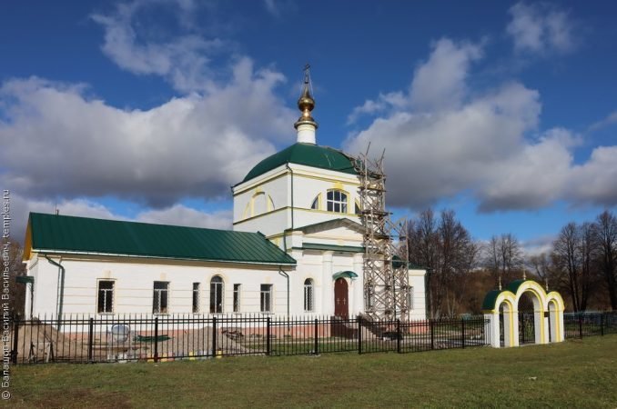 Кирпичная церковь с декором в духе классицизма, построенная в 1833-1846. Четверик с боковыми портиками и крупными «итальянскими» окнами в верхней части стен, с трапезной, в которой находились Никольский и Симеоно-Аннинский приделы, и двухъярусной колокольней. Закрыта в 1937, в 1960-х сломана колокольня, долгие годы пустовала. Восстанавливается с нач. 2010-х.