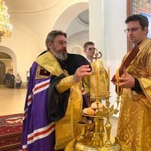 4 октября 2025 года, в канун 17-й недели по Пятидесятнице, день памяти апостола от 70-ти Кодрата, Преосвященный Стефан, епископ Александровский и Юрьев-Польский, совершил всенощное бдение в Христо-Рождественском кафедральном соборе г. Александрова. Его Преосвященству сослужили: секретарь епархиального управления иерей Антоний Чуть, иерей Алексий...